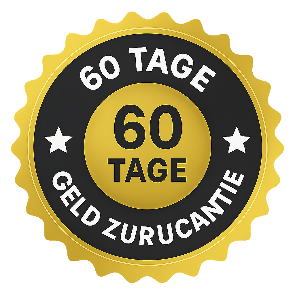 Ihre Bestellung ist durch unsere vollständige 60-Tage-Geld-zurück-Garantie abgesichert. Sollten Sie mit den Ergebnissen nicht zufrieden sein, kontaktieren Sie uns – wir erstatten Ihnen jeden Cent zurück.